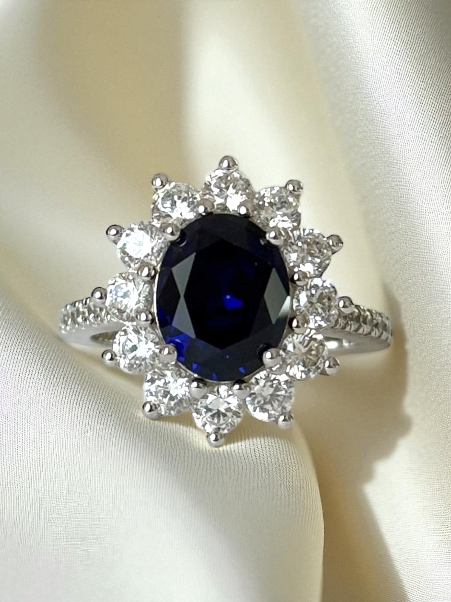 Cool, mysterious, and endlessly chic, Midnight Reverie captures the essence of moonlit nights and timeless sophistication. The rich midnight blue centerpiece is surrounded by a brilliant halo, creating a captivating contrast that feels both classic and modern. A piece that embodies quiet confidence and refined allure — perfect for moments that linger long after the night ends.